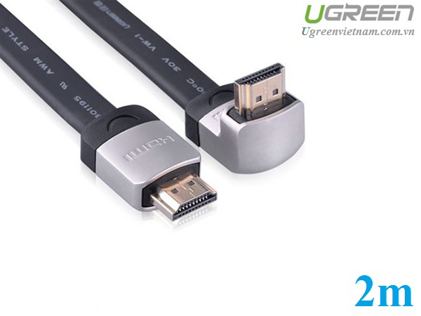 Cáp HDMI Ugreen 2m đầu bẻ góc 90 độ chính hãng Hỗ trợ 3D, 4K x 2K, HD1080P
