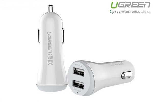 Sạc trên Ô tô 2 cổng USB Chính hãng Ugreen 20393 cao cấp (màu trắng)