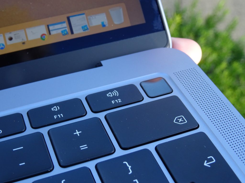 Phía bên trên nút nguồn được tích hợp luôn cảm biến vân tay TouchID nhưng lại không đi kèm với thanh touchbar. Đây cũng là mẫu Macbook đầu tiên có cảm biến vân tay nhưng không có touchbar. Thậm chí những mẫu Macbook Pro 13 inch non-touchbar cũng không hề có cảm biến vân tay mà thay vào đó chỉ là nút nguồn vật lí thông thường. Tuy nhiên như đã nói với việc tích hợp con chip T2 để nhận TouchID thì máy có thêm vài trở ngại nữa.